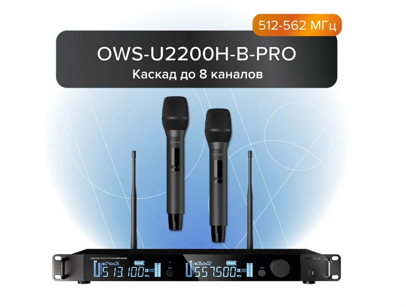 Октава. 2-канальная радиосистема с 2-мя ручными передатчиками OWS-U1200TH Октава. 2-канальная радиосистема с 2-мя ручными передатчиками OWS-U1200TH (диапазон В:512-562 МГц) (OWS-U2200H-B PRO)