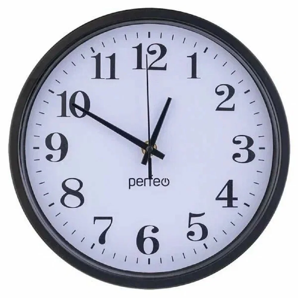 Perfeo Настенные часы "PF-WC-002", круглые д. 25 см, чёрный корпус / белый циферблат (PF_C3062)