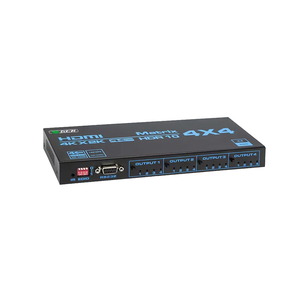 GCR Матричный переключатель HDMI 2.0 4x4, 4 устройства к 4 мониторам, поддержка 4K60Hz, 4:4:4, HDCP 2.2, 18G, IR, RS-232, GCR-56349