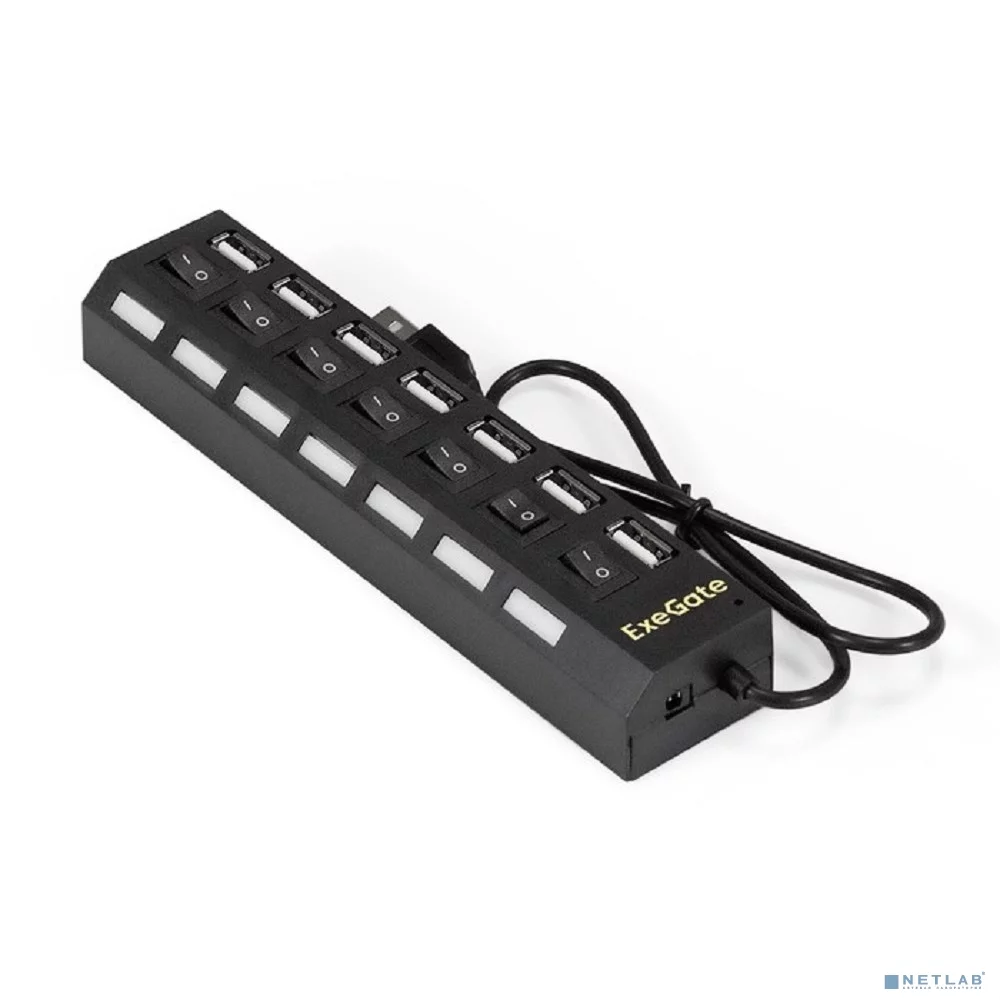 Exegate EX293978RUS USB-Хаб (концентратор) ExeGate DUB-72SW (кабель-адаптер USB2.0 --> 7xUSB2.0, кнопки включения/ отключения для каждого порта, Plug&Play, черный)