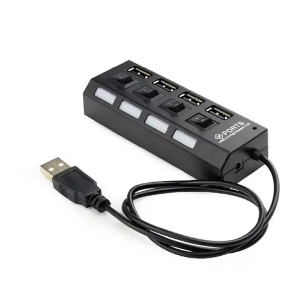 Gembird Разветвитель USB2.0 4xUSB, блок питания 2А, подсветка и выкл, кабель USB 55см, черный (UHB-U2P4-02A)