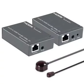 ORIENT VE045IR, HDMI extender (Tx+Rx), активный удлинитель до 60 м по витой паре Cat5e/ 6, HDMI 1.4а, 1080p@60Hz/ 3D, HDCP, доп. вых. HDMI, передача ИК сиг. упр.( IR-TX/ Rx в компл), БП 5В/ 1А (31323)