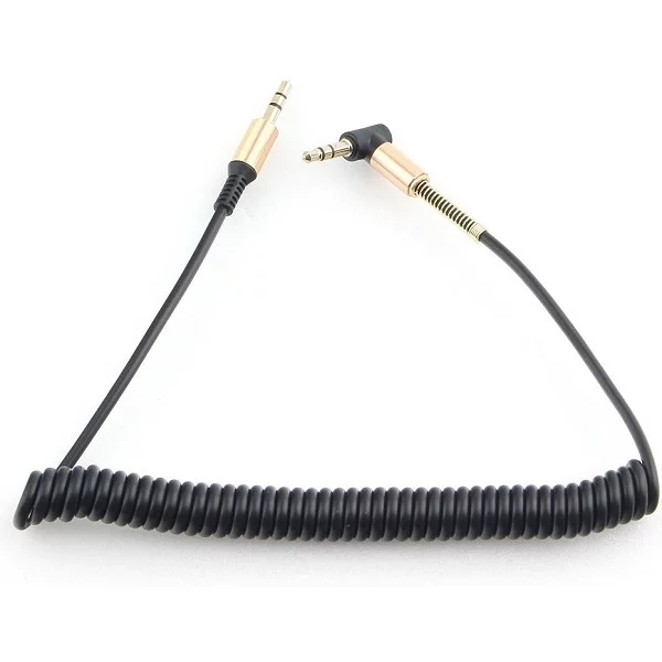 Кабель аудио (угловой) спиральный Cablexpert CCAB-02-35MMLC-1.8MB. 3.5 джек (M)/ 3.5 джек (M), черный, 1.8м, блистер
