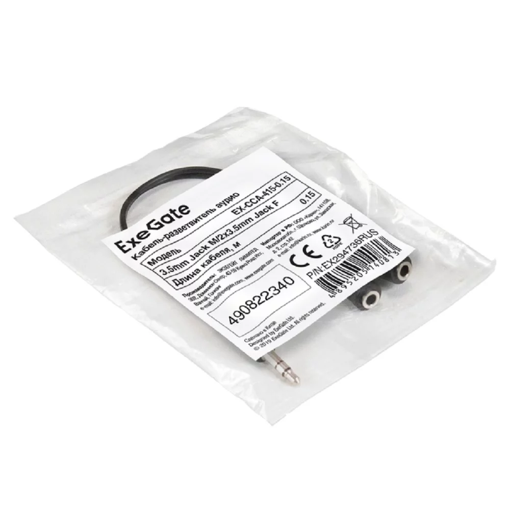 Exegate EX294736RUS Кабель-разветвитель аудио ExeGate EX-CCA-415-0.15 (3.5mm Jack M/2x3.5mm Jack F, 0,15м)