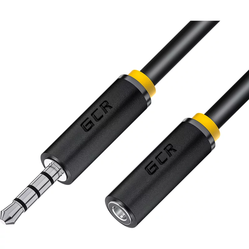 GCR Удлинитель для гарнитуры 2.0m jack 3,5mm/ jack 3,5mm черный, желтая окантовка, 28AWG, M/ F, GCR-54000