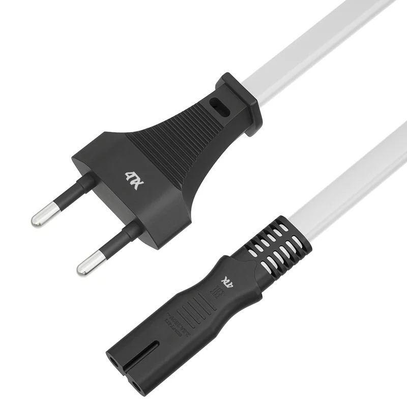 4ПХ Кабель питания 1.5m, плоская вилка - C7, белый, черные коннекторы, 2*0,5mm, 4PH-R90371