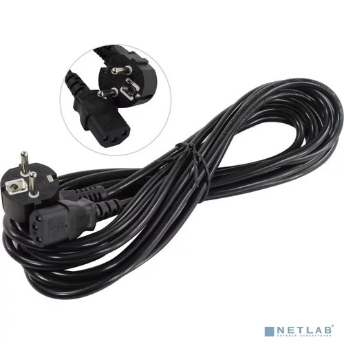 Exegate EP280665RUS Кабель питания ExeGate Power PC-5P (Евровилка угловая Schuko-]С13) VDE-250V-3*0.75mm2, медь, черный, 5м.