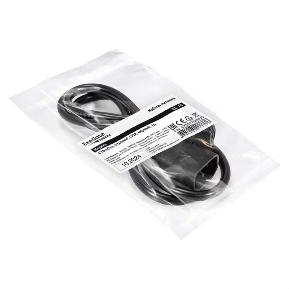 Exegate EX297755RUS Кабель питания ExeGate Special EC-1S (C13-]C14, 3*0.5mm2, CCA, черный, 1м)