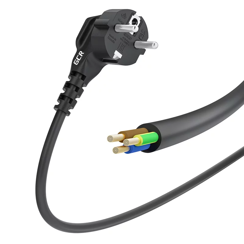 GCR Кабель питания 0.5m, евровилка угловая Schuko - без разъема, черный, 3*0,75mm, GCR-55329
