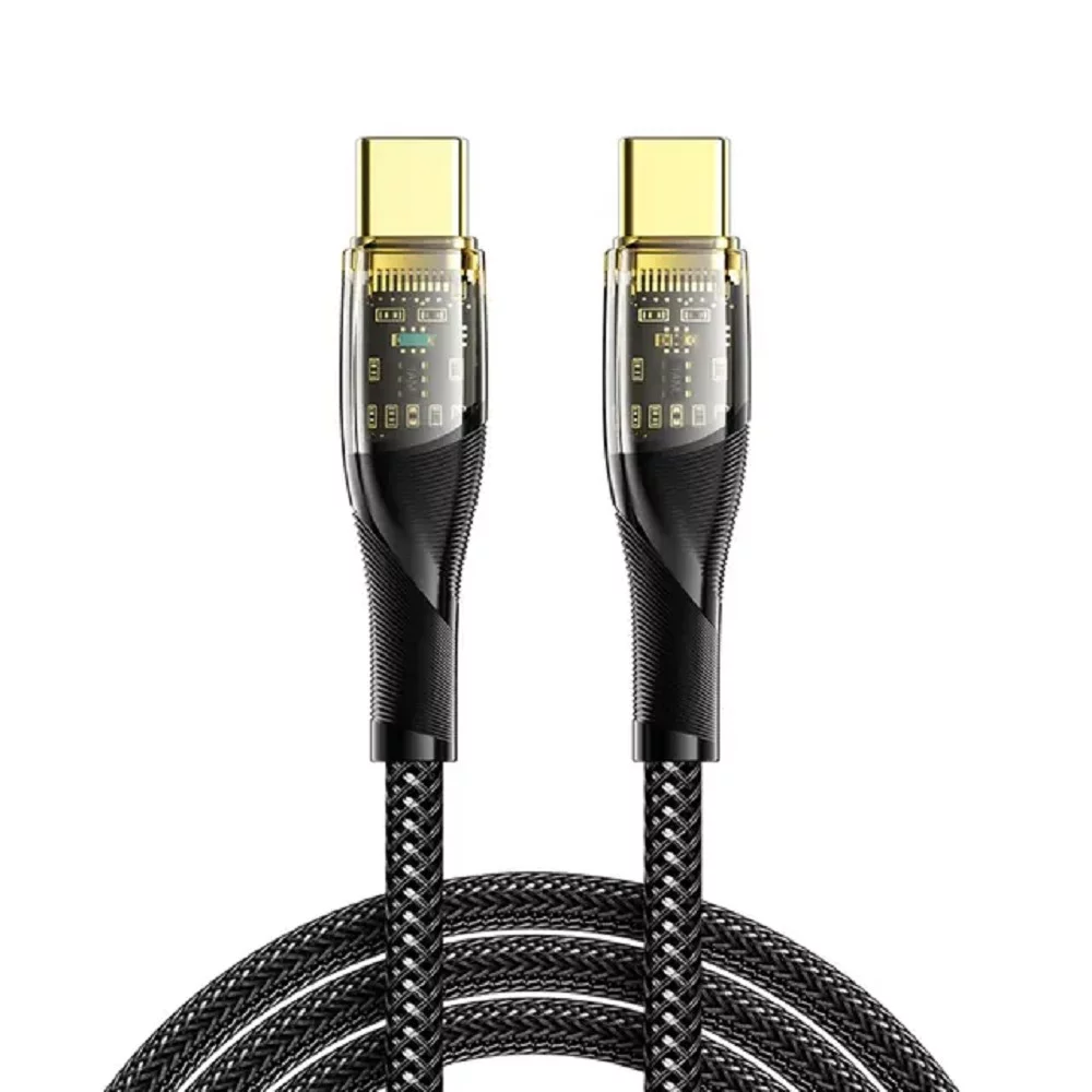 Rexant (18-7092) Кабель Type-C – Type-C, 5А, 100Вт, 1м, в черной нейлоновой оплетке со световой индикацией