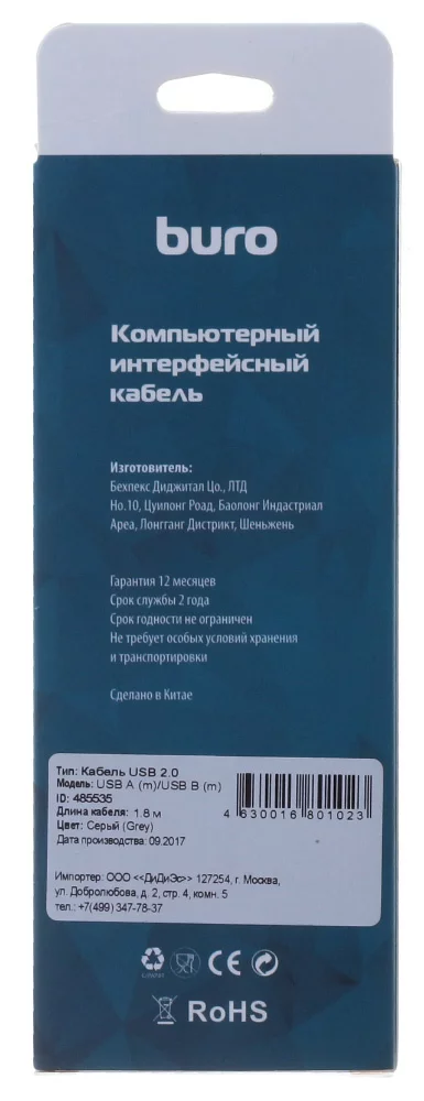 Кабель Buro USB A(m) USB B(m) 1.8м (BHP RET USB_BM18) серый (блистер)