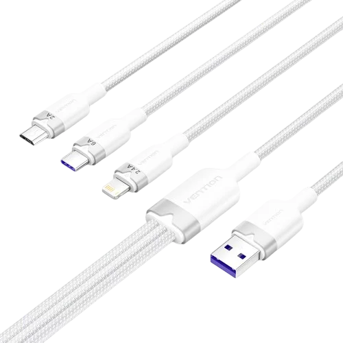 Кабель Vention 3 в 1 USB 2.0 AM/ Micro-B, USB-C, Lightning M - 1.5м. Белый 6A, шт. (CTRWG)