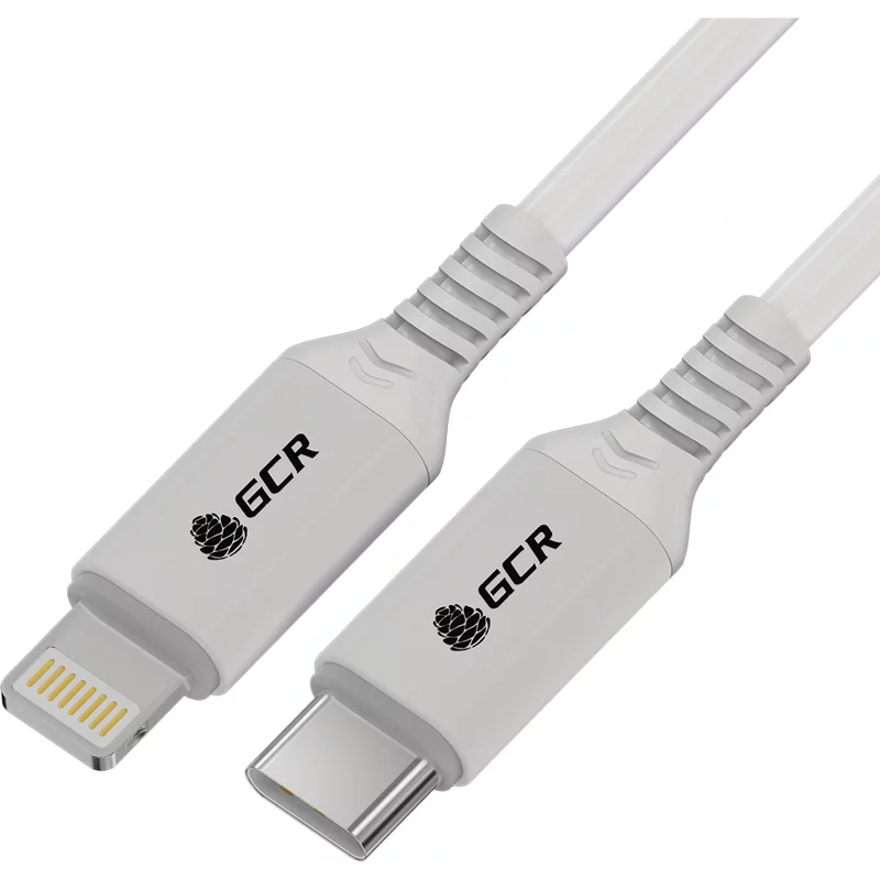 GCR Кабель PREMIUM 3.0m TypeC/Lightning MFI POWER DELIVERY 18 W, быстрая зарядка, белый силикон, AL case белый, белый ПВХ, GCR-53756