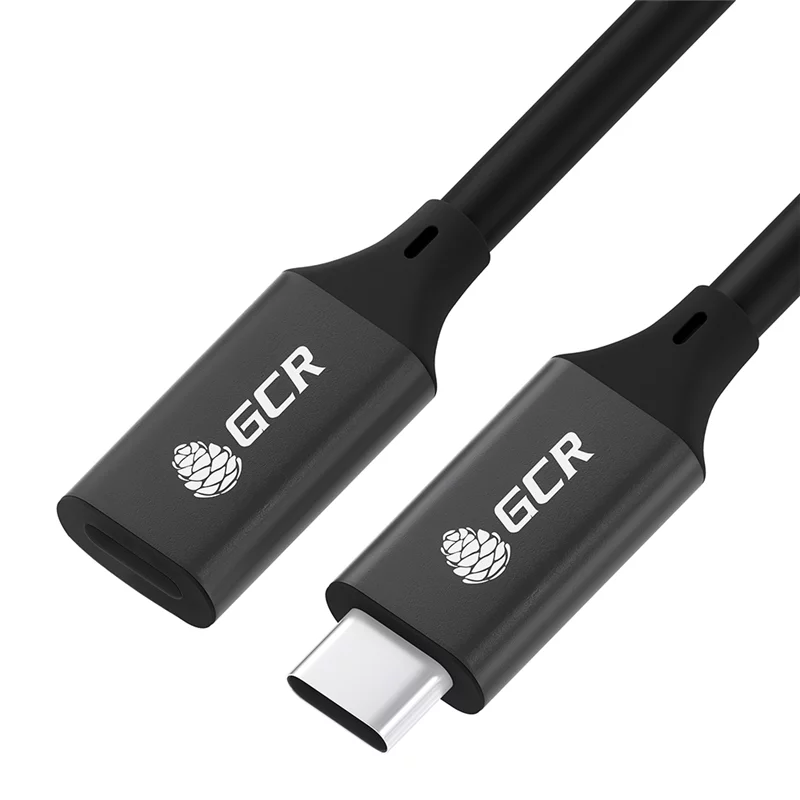 GCR Удлинитель USB 3.1 Type C-С, 3.0m черный, 100W/20V/5A, M/F, TPE, AL сase черный, экран, армированный, GCR-54078