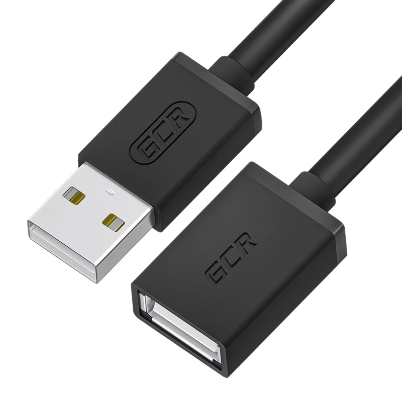 GCR Удлинитель 0.75m USB 2.0 AM/ AF, черный, GCR-55068