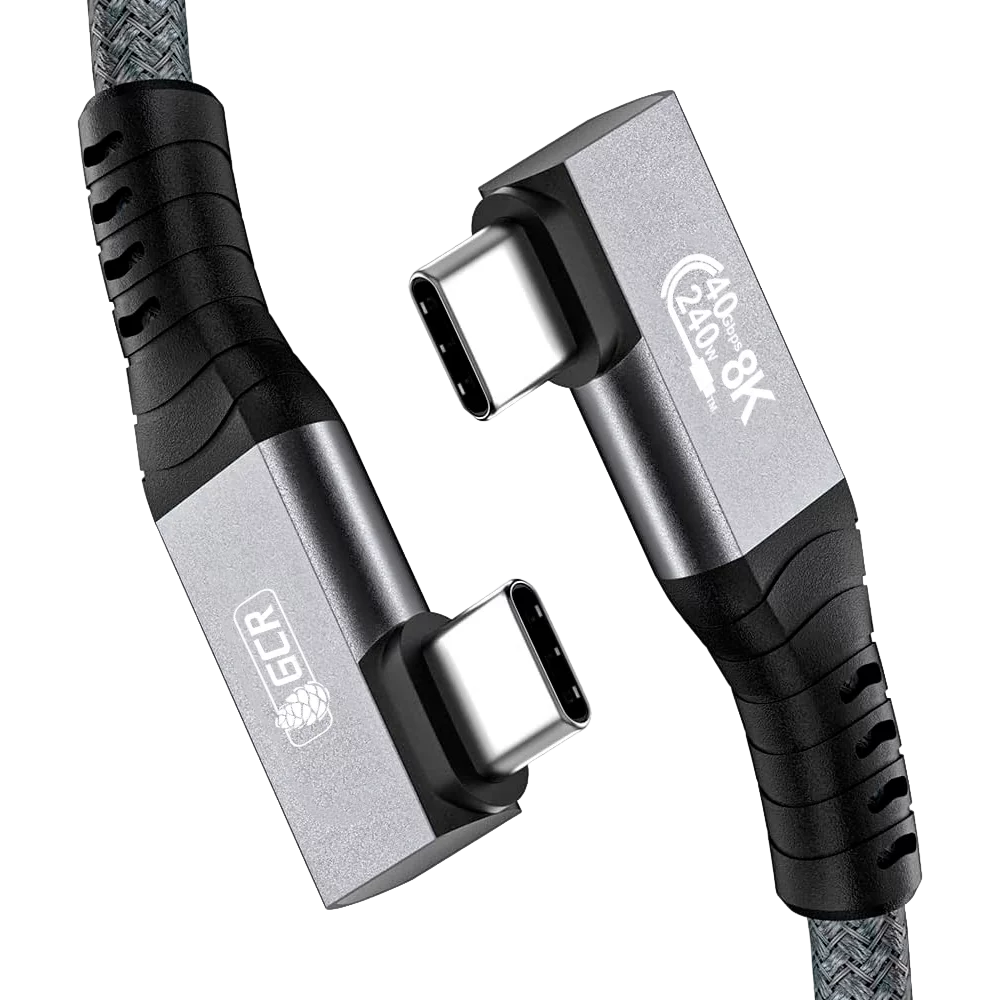 GCR PRO Кабель USB4 Type-C, 2.0m, угловой, 40Gbps, 240W, 8K60Hz, M/M, разъемы Г-образные, боковые, текстиль, серый, GCR-57134