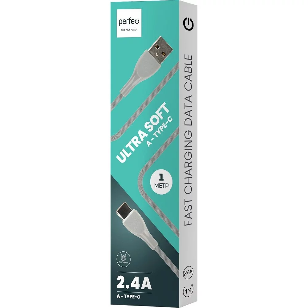 PERFEO Кабель USB A вилка - C вилка, 2.4A, серый, силикон, длина 1 м., ULTRA SOFT (U4711)