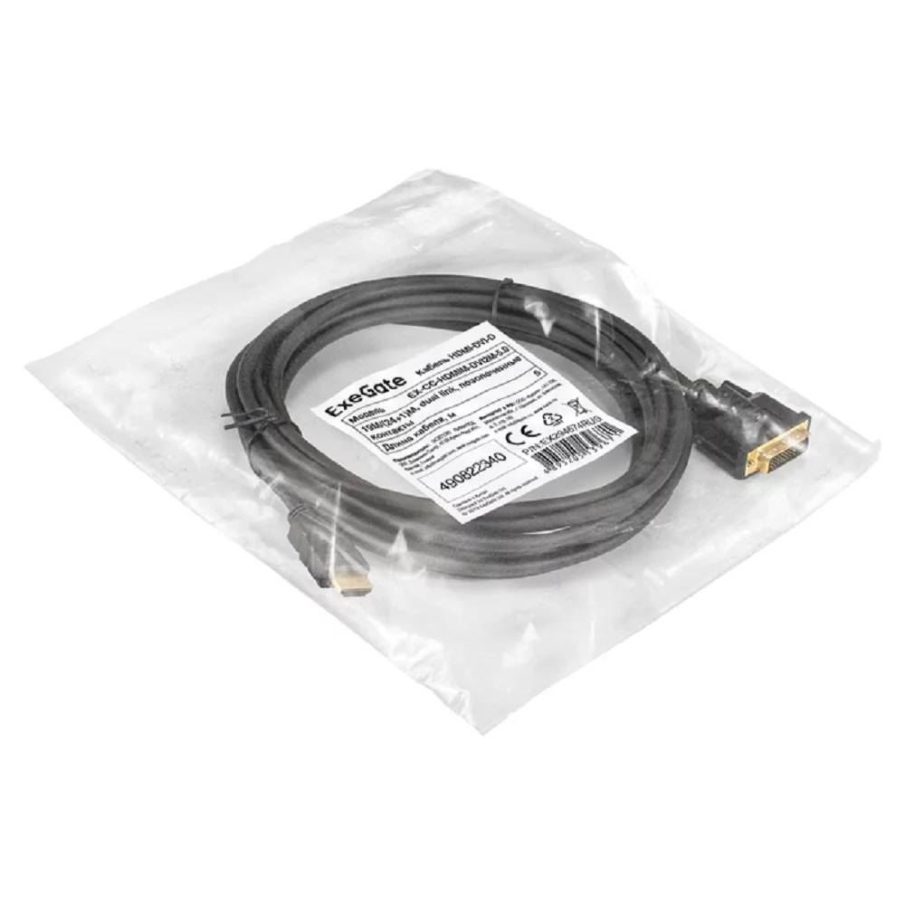 Exegate EX294674RUS Кабель HDMI-DVI-D ExeGate EX-CC-HDMIM-DVI2M-5.0 (19M/ (24+1)M, dual link, 5м, позолоченные контакты)