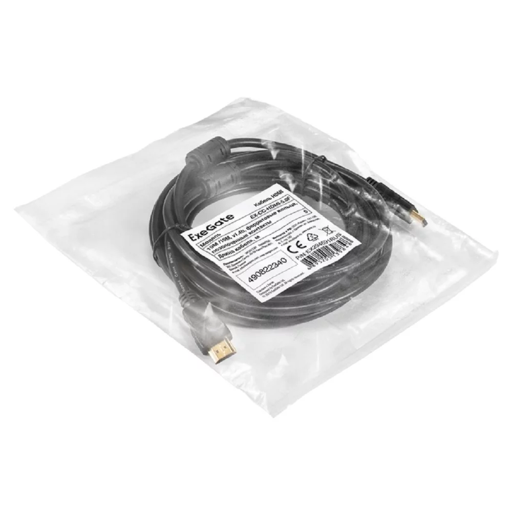 Exegate EX294691RUS Кабель HDMI ExeGate EX-CC-HDMI-5.0F (19M / 19M, 5м, v1.4b, ферритовые кольца, позолоченные контакты)