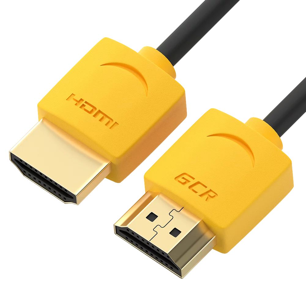 GCR Кабель SLIM 3.0m HDMI 2.0, черный, желтые коннекторы, HDR 4:4:4, Ultra HD, 4K 60 fps 60Hz, 3D, AUDIO, 18.0 Гбит/с, GCR-51577