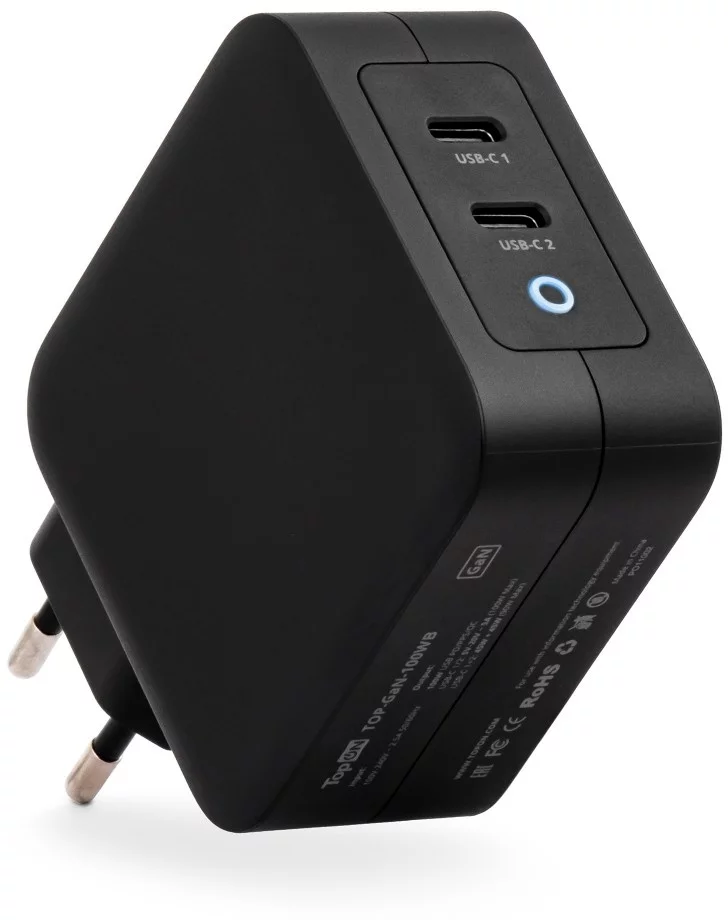 Блок питания TopON TOP-GaN-100WB автоматический 100W 5V-20V 5A 2xUSB от бытовой электросети LED индикатор (103207)