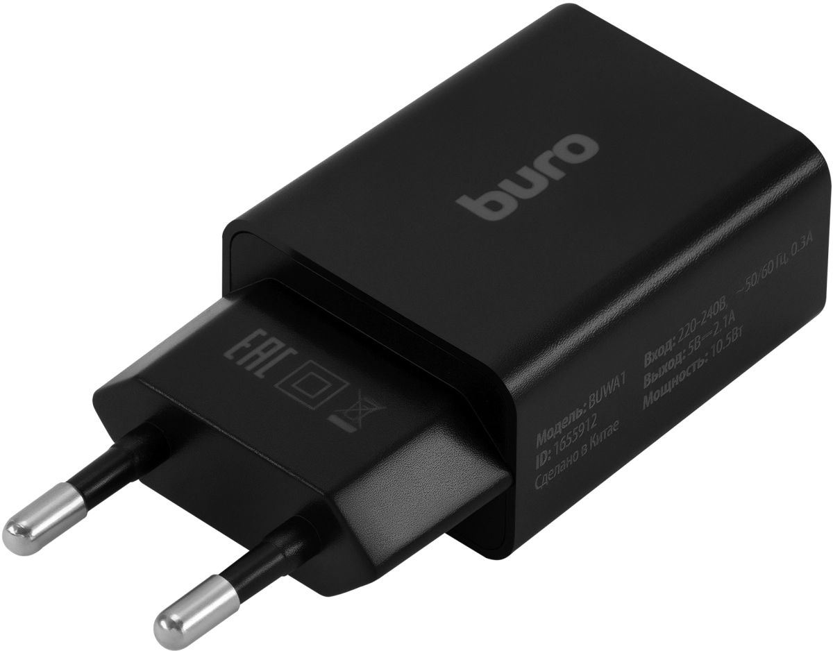 Сетевое зар./ устр. Buro BUWA1 10.5W 2.1A USB-A черный (BUWA10S100BK)