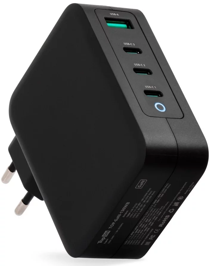 Блок питания TopON TOP-GaN-130WB автоматический 130W 5V-20V 5A 4xUSB от бытовой электросети LED индикатор
