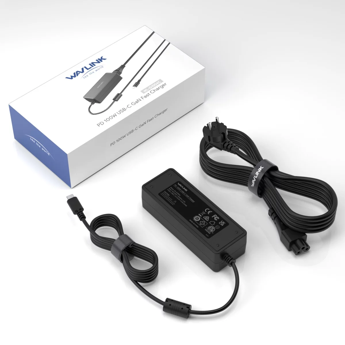 Адаптер питания AC Adapter WAVLINK GaN charger PD 100W GaN USB-C fast Charger for laptops & USB docking stations, Type C cable 1.2M, AC cable 1.5M, Input AC100-240V 50/ 60Hz (WL-G1004C)