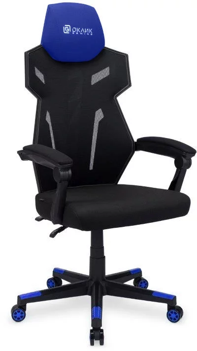 Кресло игровое Оклик 111G черный/ синий сиденье черный сетка/ ткань с подголов. крестов. пластик черный (1873068)