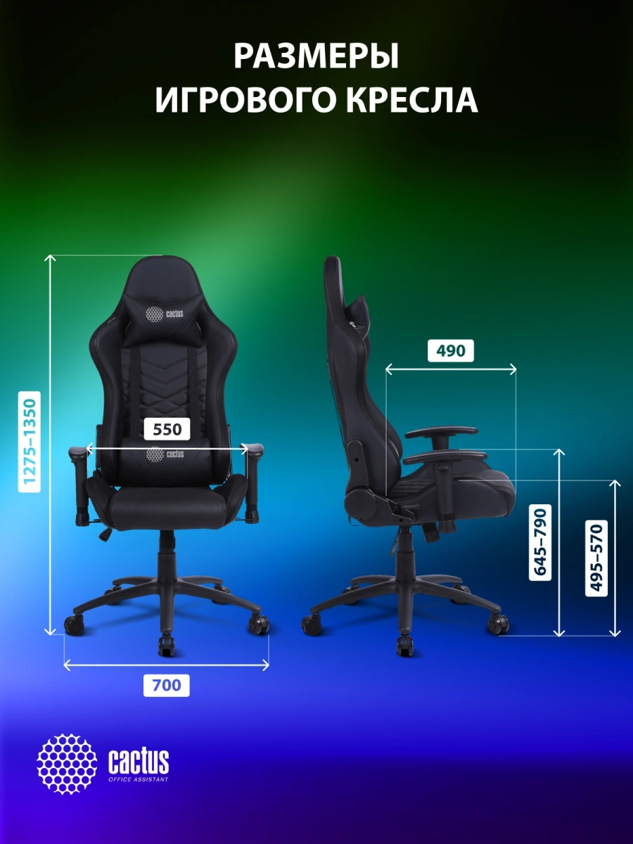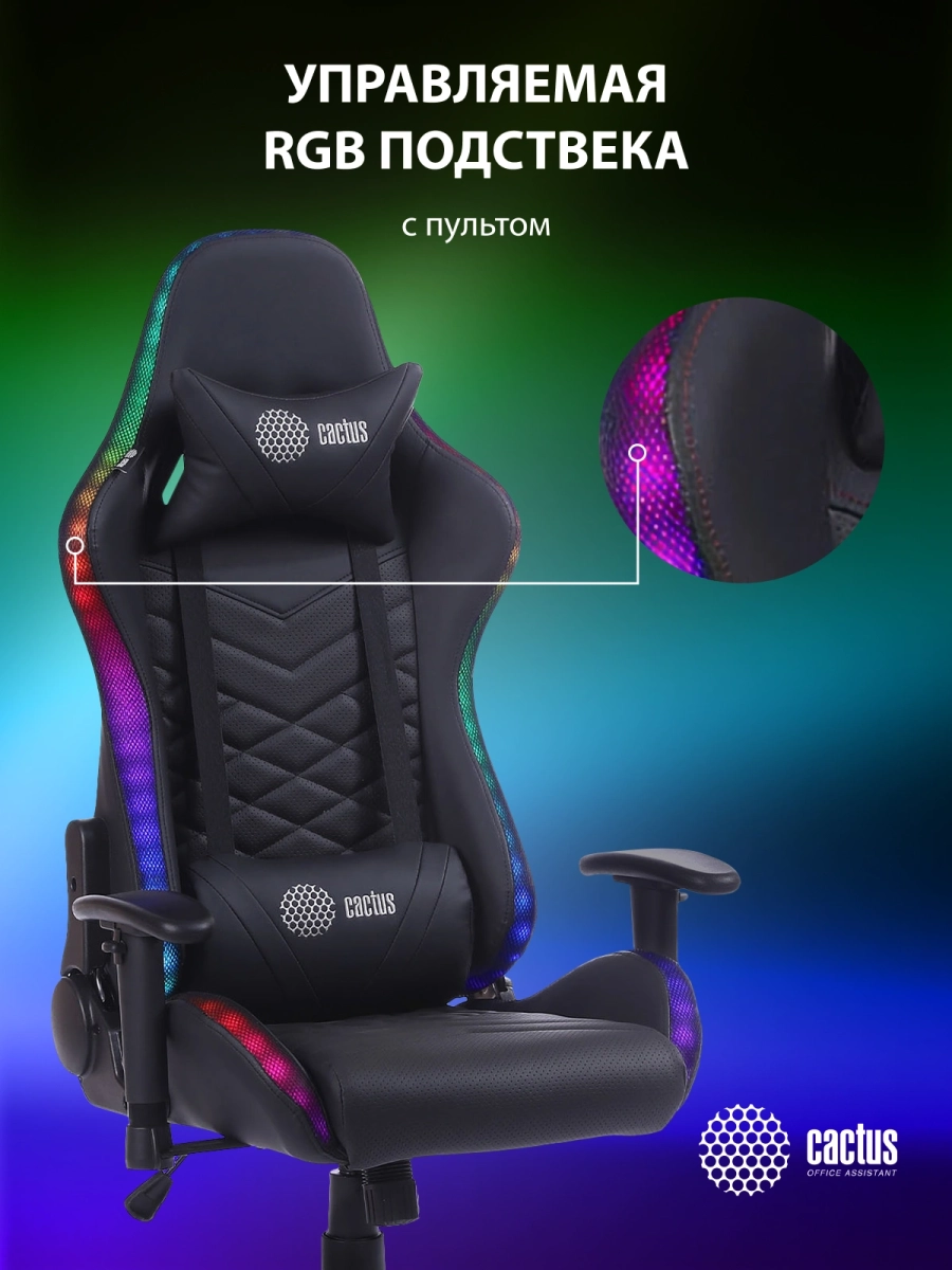 Кресло игровое Cactus CS-CHR-0099BL с RGB подсветкой черный экокожа с подголов. крестов. сталь