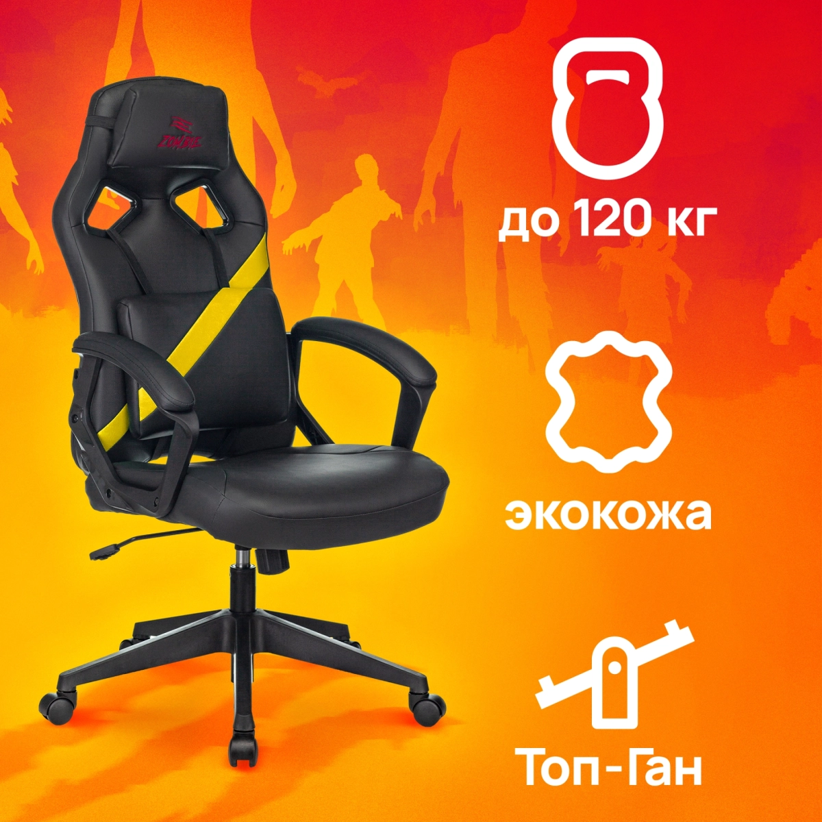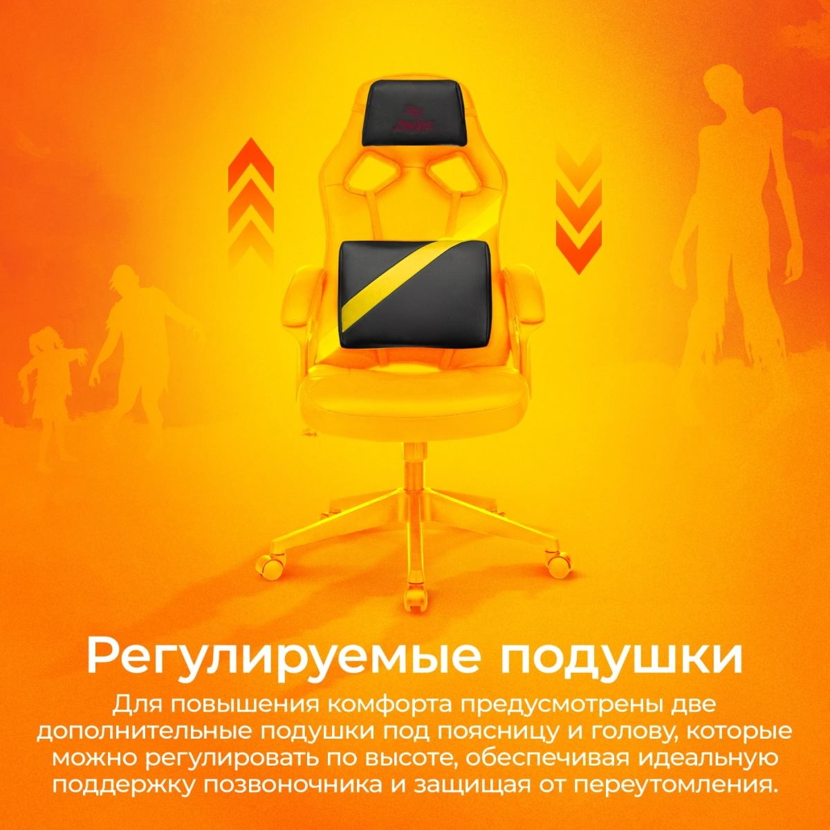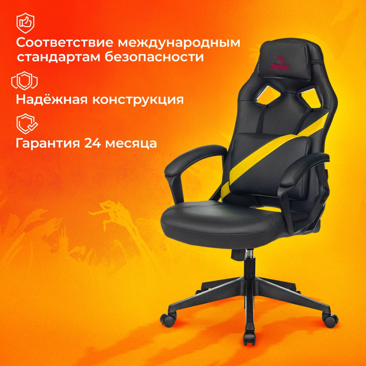Кресло игровое Zombie Driver черный/ желтый экокожа с подголов. крестов. пластик (ZOMBIE DRIVER YEL)