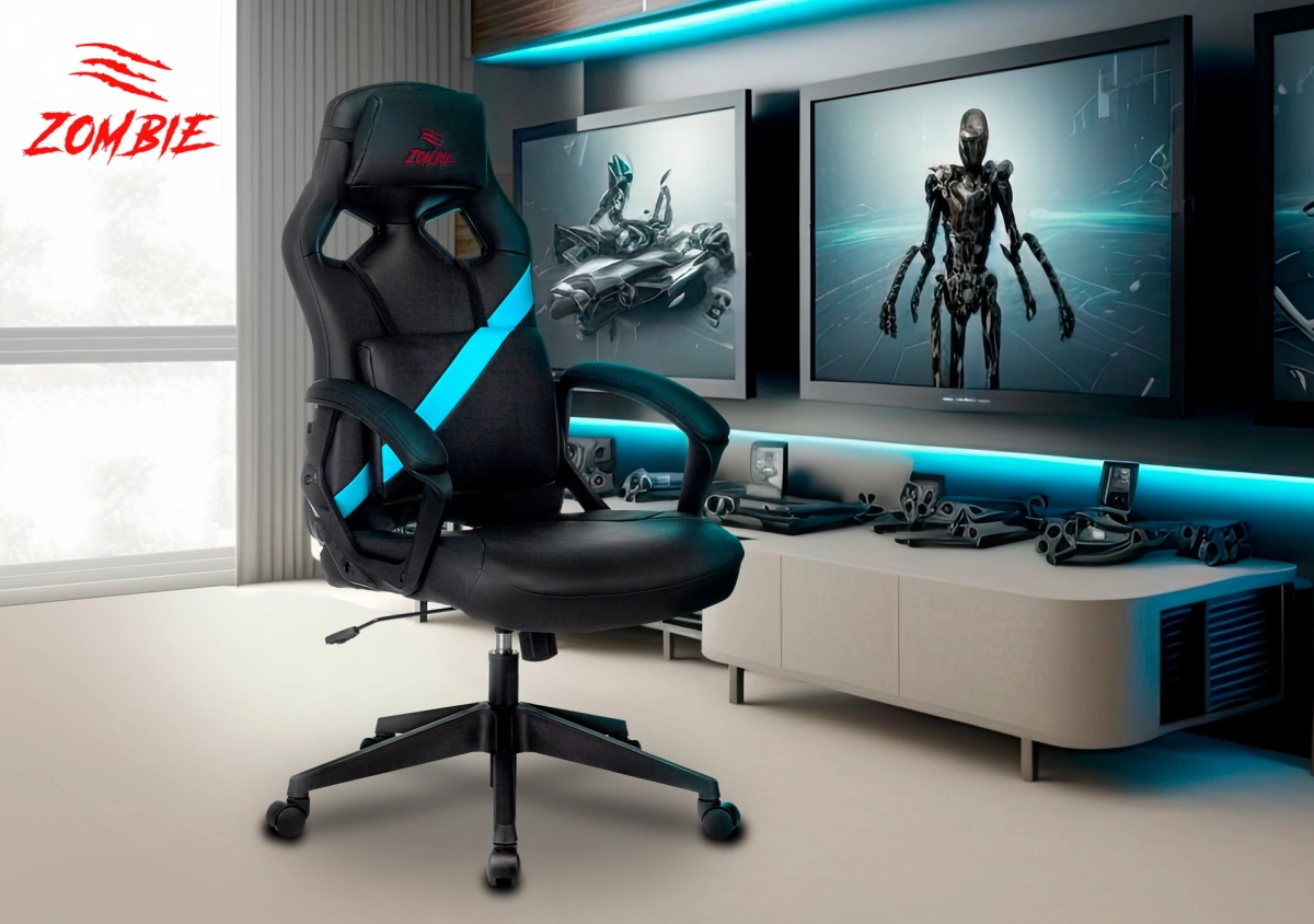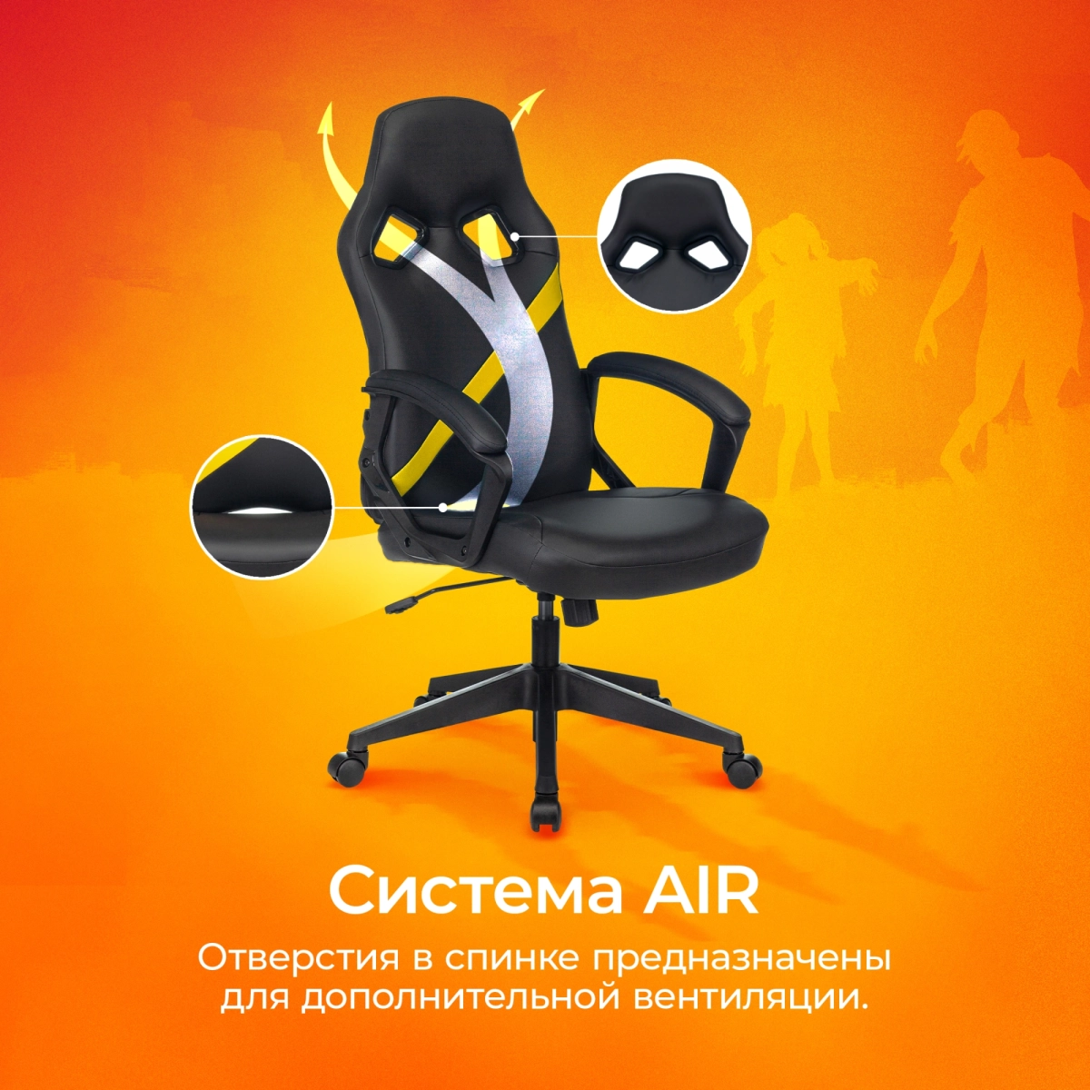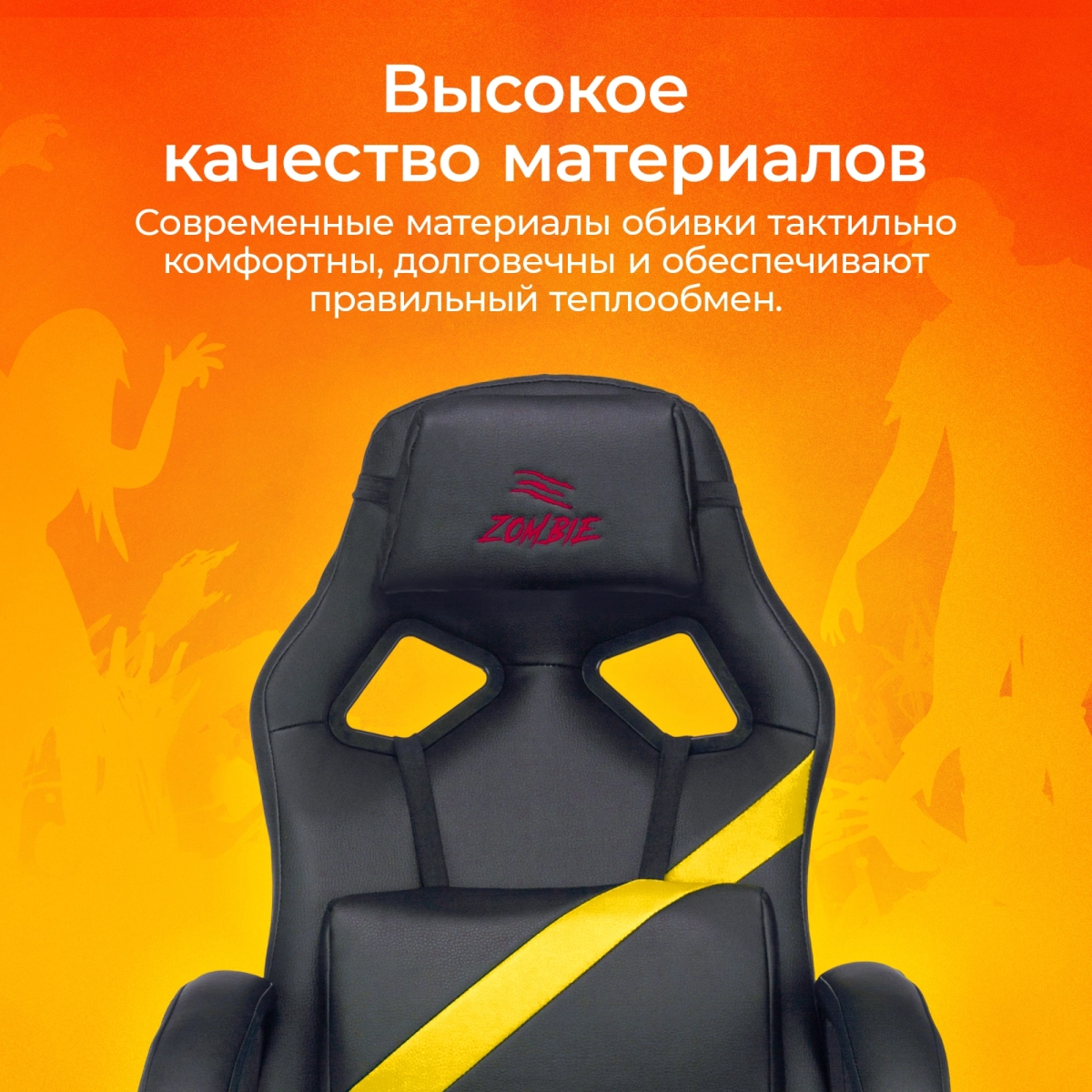 Кресло игровое Zombie Driver черный/ желтый экокожа с подголов. крестов. пластик (ZOMBIE DRIVER YEL)