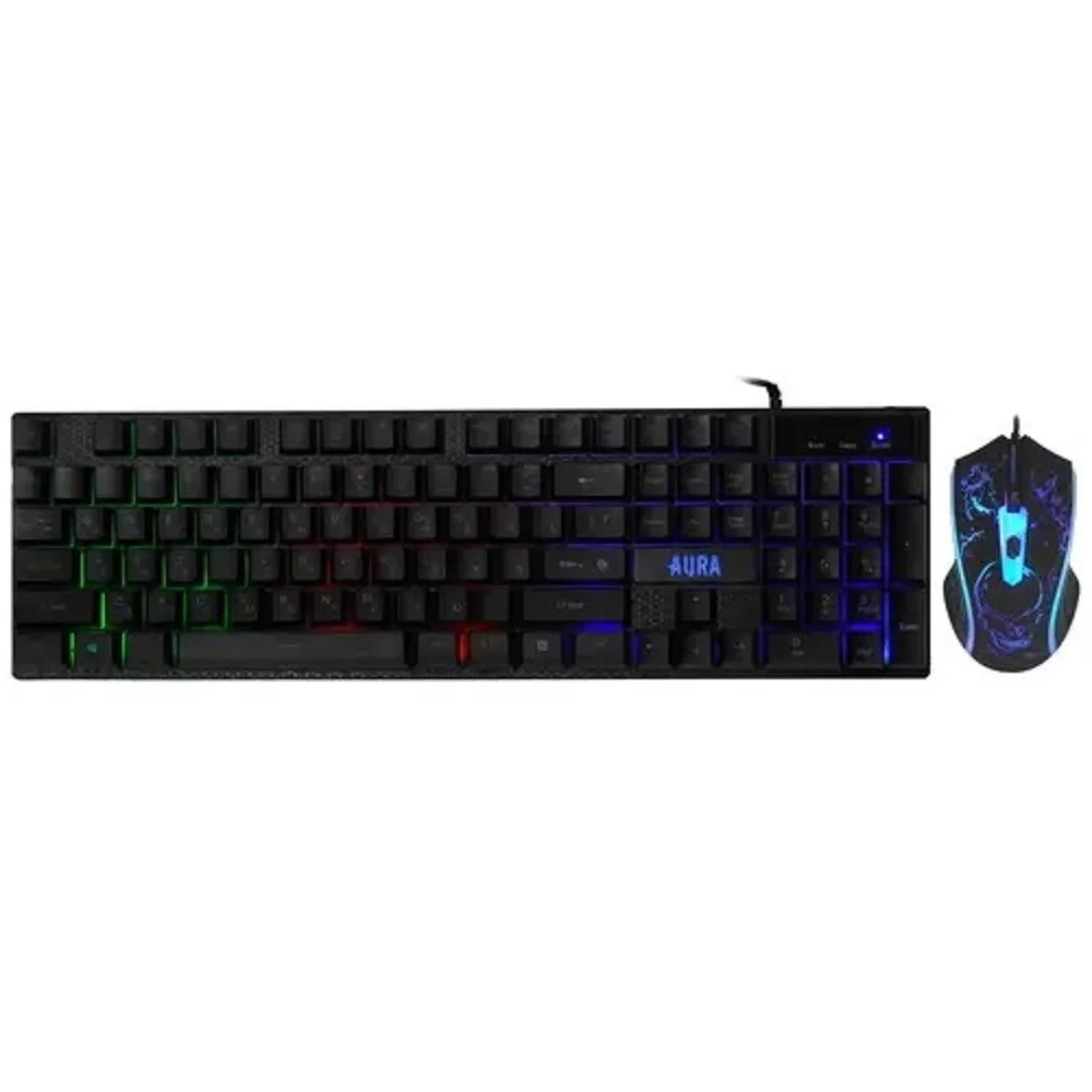 DEFENDER AURA Игровой набор мышь+клавиатура+ковер чёрные (USB, 4 кн., 2400 dpi, 104 кл., подсветка, 280 х 230 х 3 мм, ткань/ резина, MKP-117) (52117)