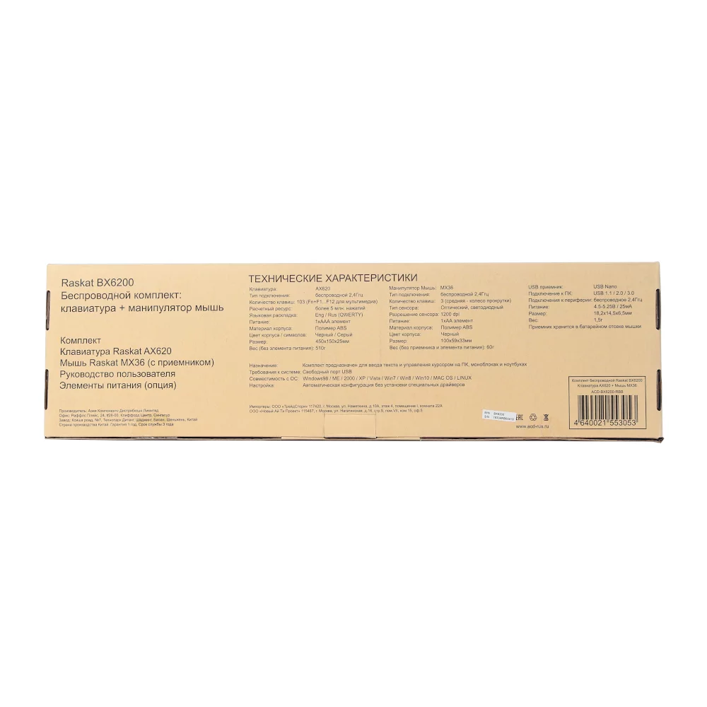 Комплект клавиатура и мышь ACD Комплект беспроводной Raskat BX6200 |ACD-BX6200-RBB| Клавиатура Raskat AX620 черная, 103 клавиши, |ACD-BX6200-RBB| защита от влаги, Мышь Raskat MX36 черная, оптическая, 1200dpi, 3 кнопки, 2.4GHz USB Nano до 10м, brown box {2