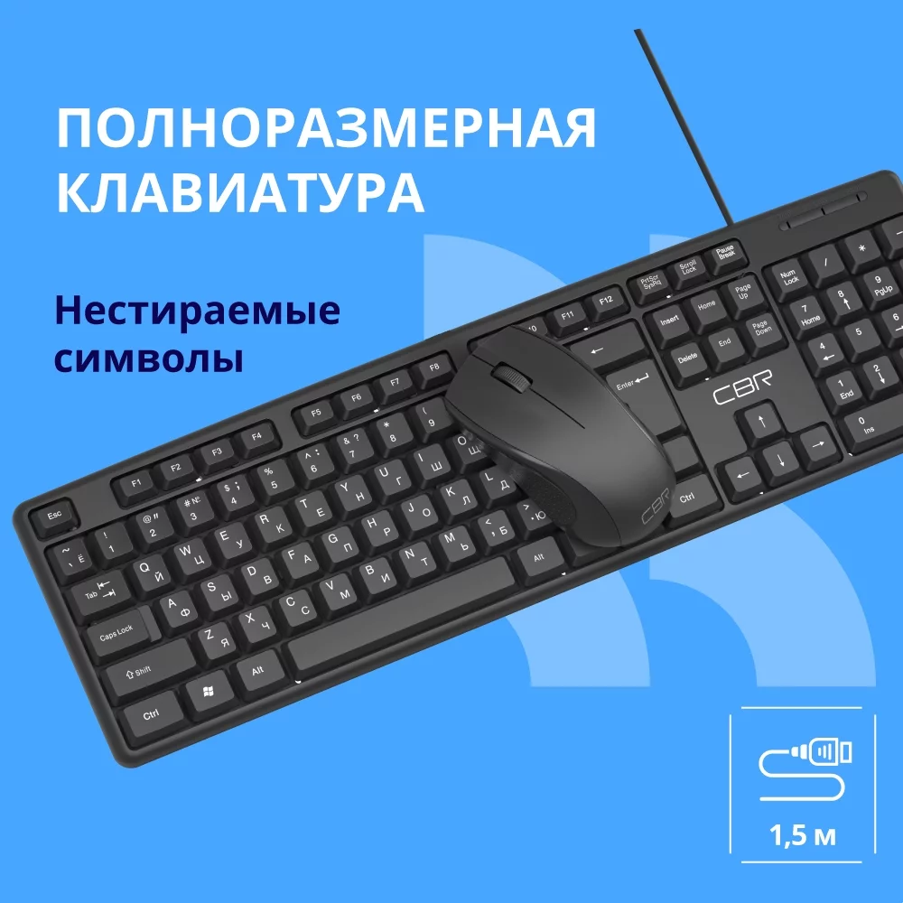 CBR KB SET 709, Комплект (клавиатура + мышь), USB. Клавиатура: 104 кл., офисн., 1,5 м. Мышь: 1000 dpi, 3 кн., 1,5 м