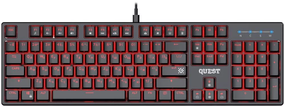 DEFENDER QUEST чёрная Игровая клавиатура (USB , SNK Red, красная подсветка, 104 кл., GK-596) (45596)