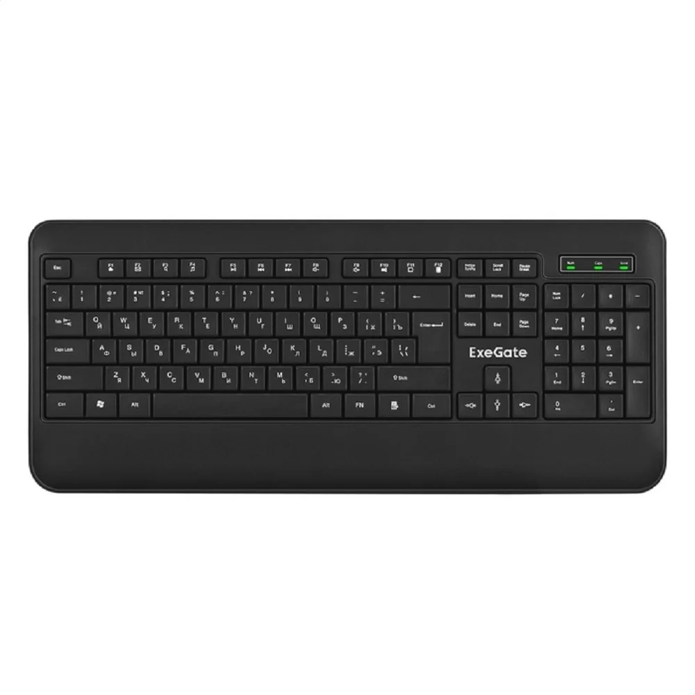 Exegate EX296922RUS Клавиатура ExeGate Professional Standard LY-E5500M (USB, полноразмерная, влагозащищенная, 104кл., Enter большой, подставка под запястья, длина кабеля 1,35м, черная, Color Box)