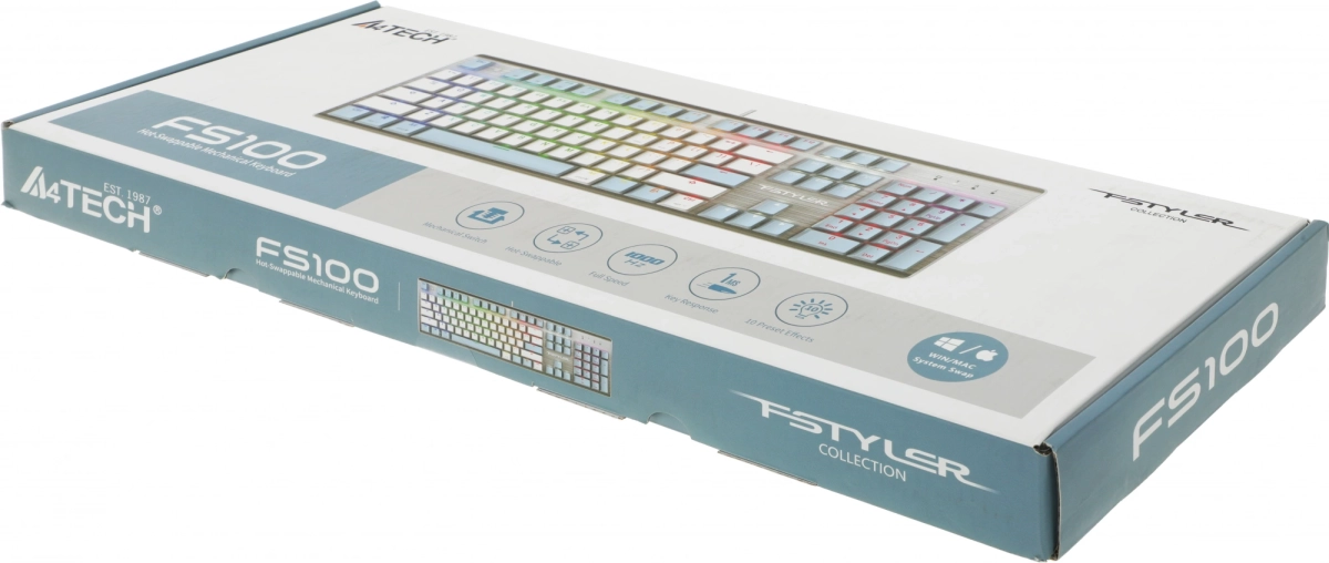 Клавиатура A4Tech Fstyler FS100 Neon механическая синий/ белый USB for gamer LED (FS100)