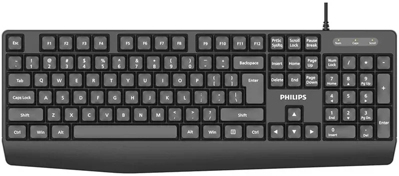 Philips Проводная Клавиатура SPK6237, USB 2.0 104 клав, высокие кн., русская заводская раскладка, чёрный (SPT6237B/60)