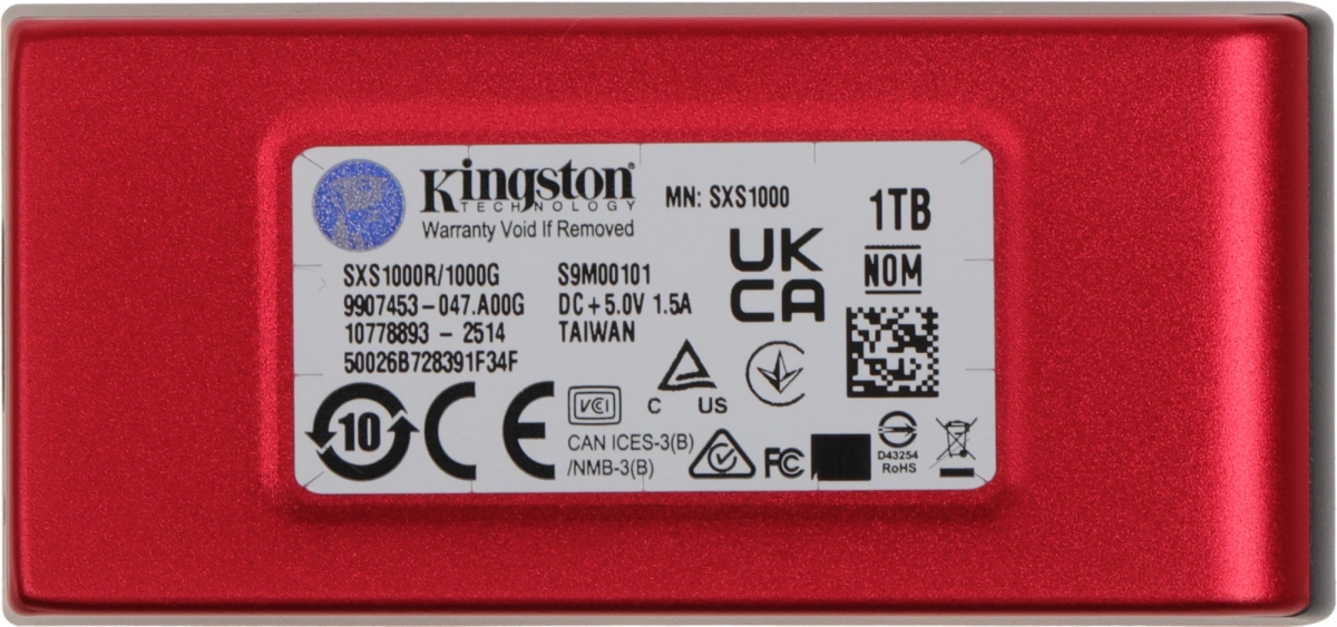 Твердотельный накопитель/ Kingston External SSD XS1000, 1000GB, Type-C/A, USB 3.2 Gen 2, R/W 1050/1000MB/s, 70x33x14mm, 29g., Red (12 мес) (SXS1000R/1000G)