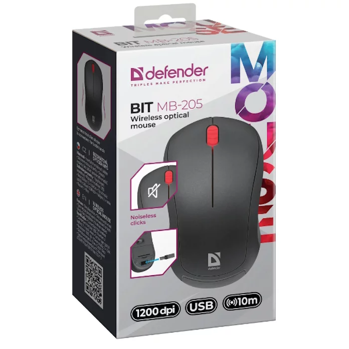 *Мышка Defender MB-205 USB OPTICAL WRL BIT BLACK (52205)