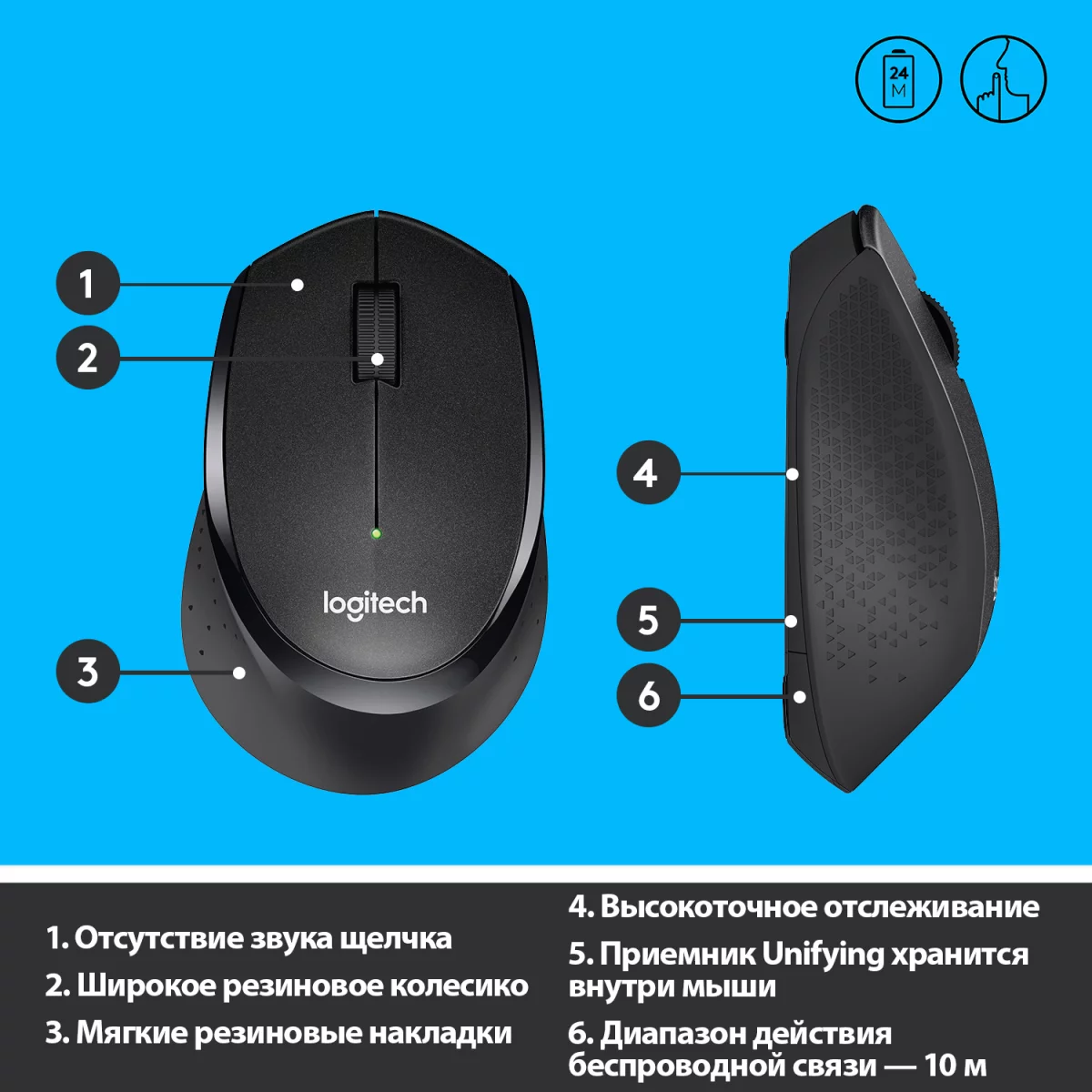 - Мышь беспроводная Logitech M330 Silent Plus Black, 910-004924 (910-004924)