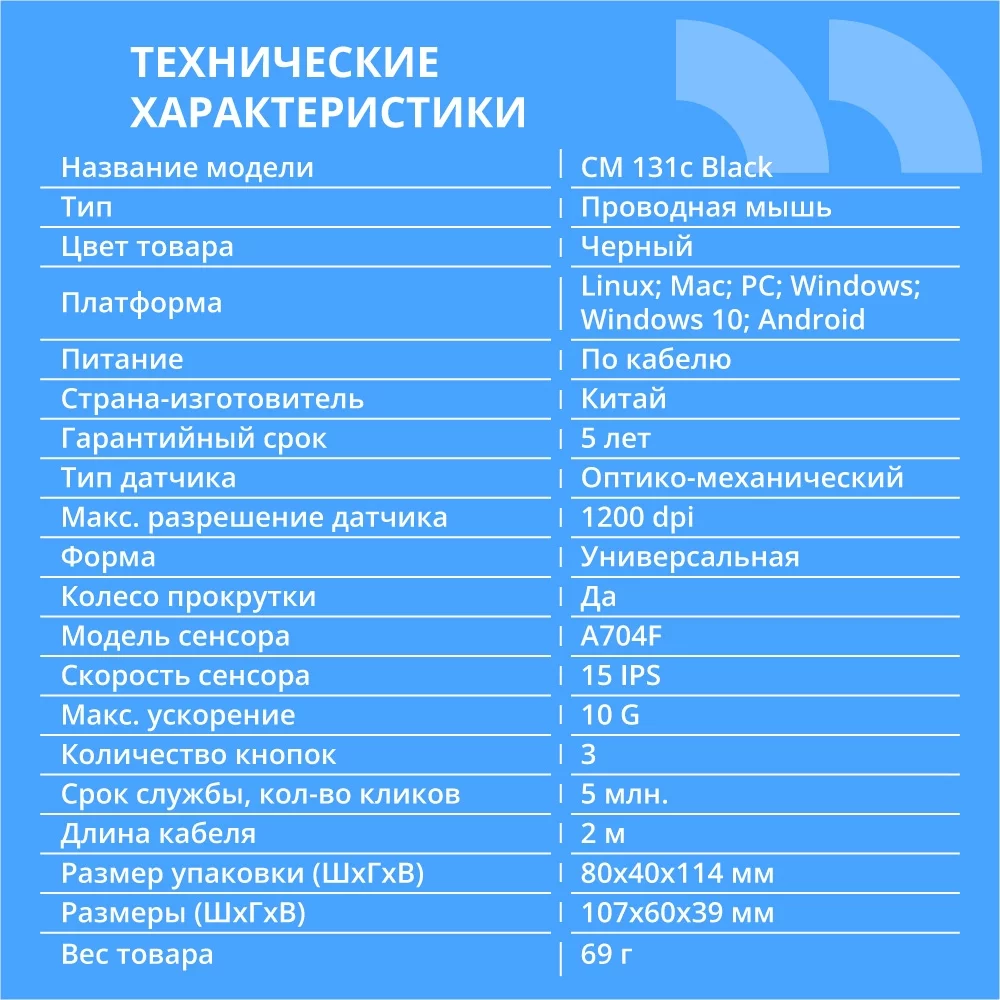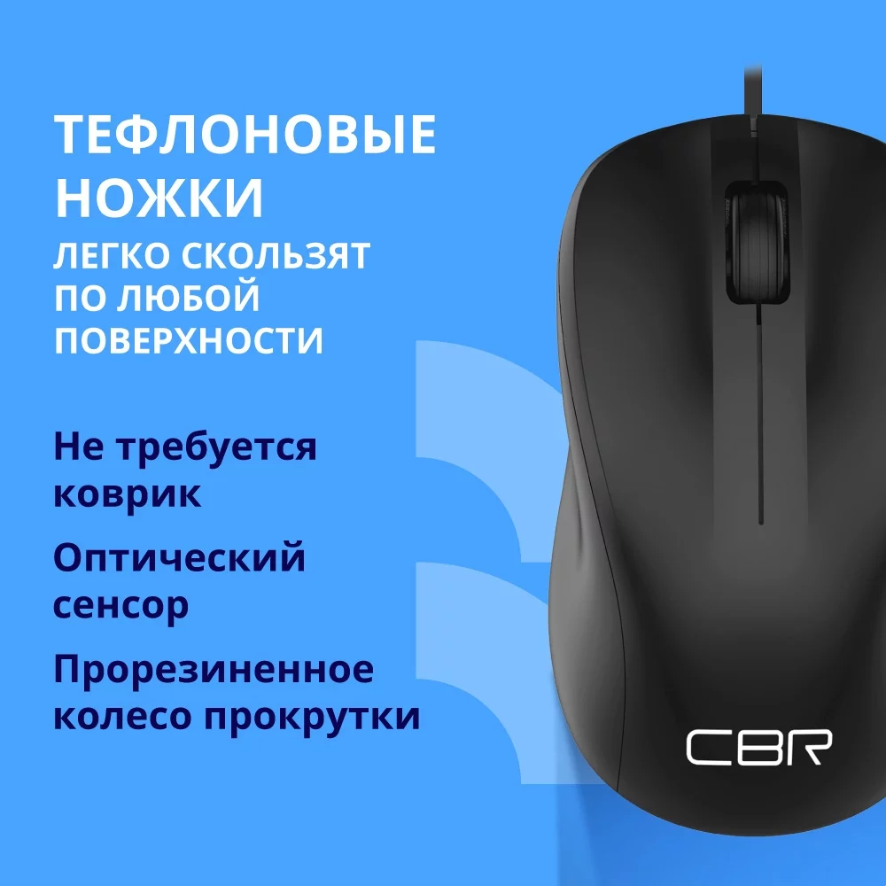 CBR CM 131c Black, USB, Мышь офисн., оптич., 1200 dpi, 3 кн., 2.0 м, резиновое колесо прокрутки, ABS-пластик, нет логотипа