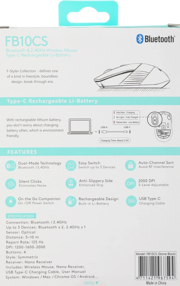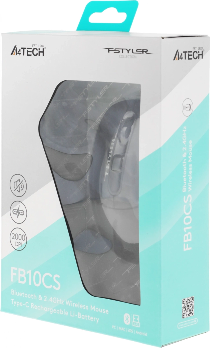 Мышь A4Tech Fstyler FB10CS черный оптическая (2000dpi) silent беспроводная BT/ Radio USB (4but) (FB10CS USB STONE BLACK)