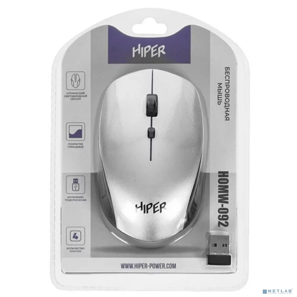 Мышь HIPER беспроводная HOMW-092 {1600dpi, серый, USB, 4кнп}