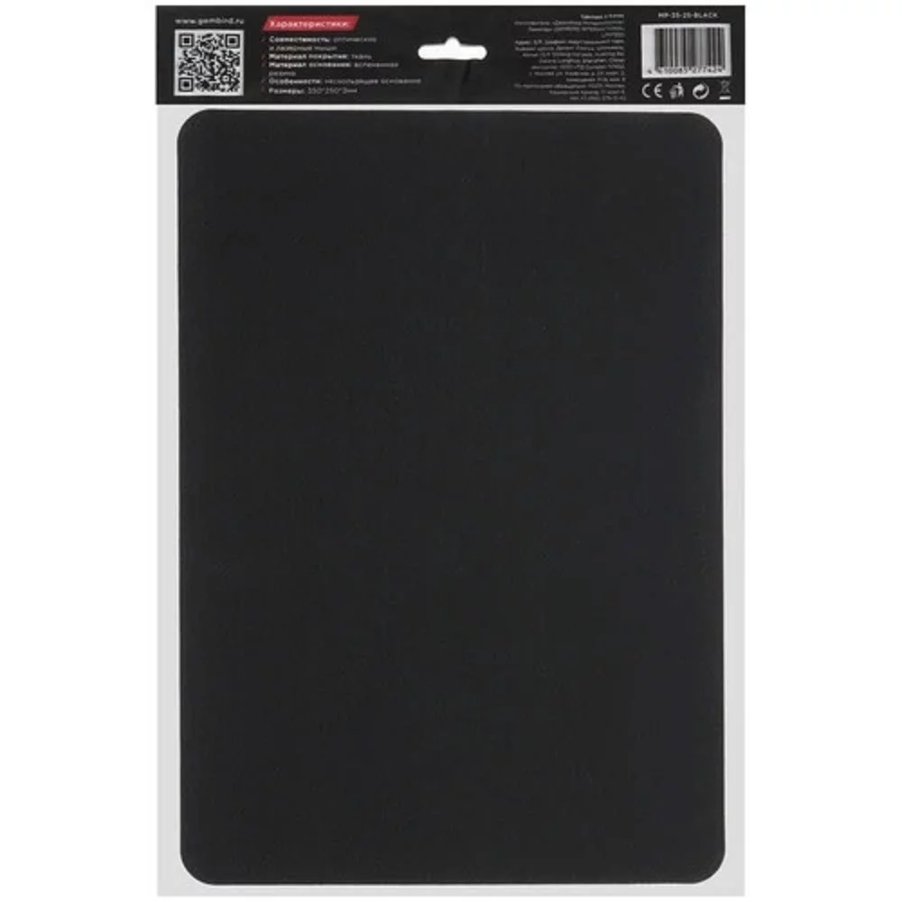 Коврик для мыши Gembird MP-35-25-BLACK, черный, 350х250х3мм, ткань+резина, пакет