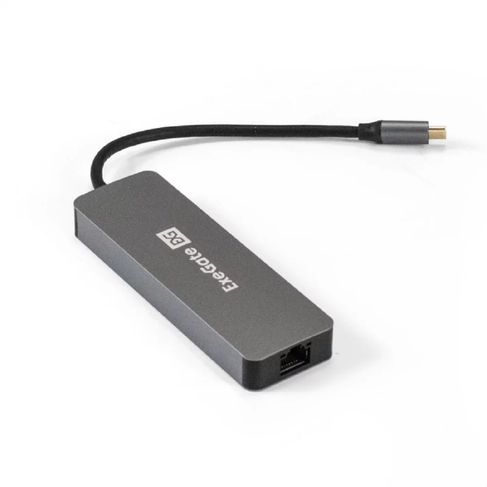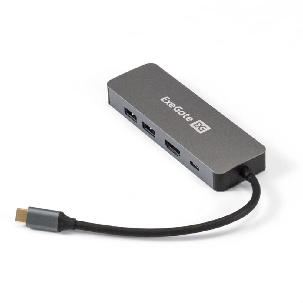 Exegate EX293982RUS Док-станция ExeGate DUB-21C/PD/HL (кабель-адаптер USB Type-C --] 2xUSB3.0 + PD 100W + HDMI 4K@60Hz + Lan RJ45 10/100/1000Mb, Plug&Play, серая)