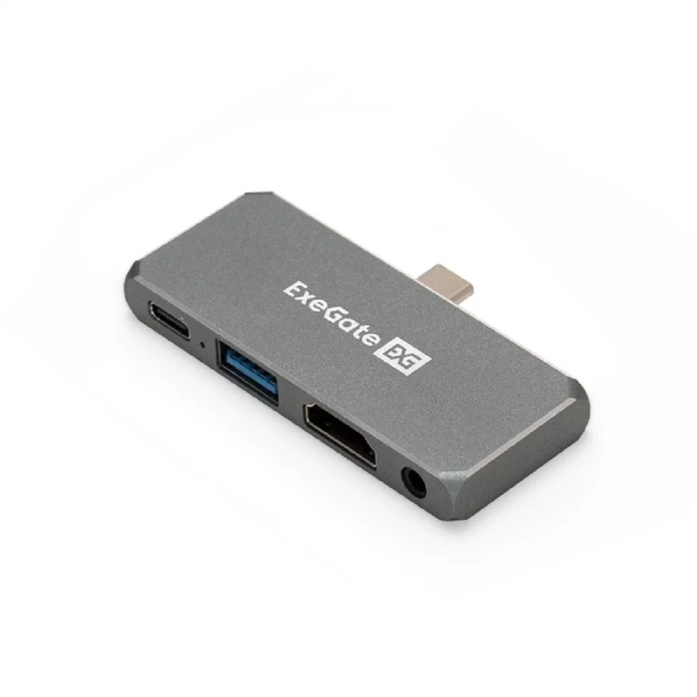 Exegate EX297633RUS Док-станция 5-в-1 ExeGate DUB-31C/PD/HA (кабель-адаптер USB Type-C --] 1xUSB3.0 + Type-C DATA (480MB/s) + PD 100W + HDMI 4K@30Hz + Audio, Plug&Play, подходит для iPad Pro и мобильн
