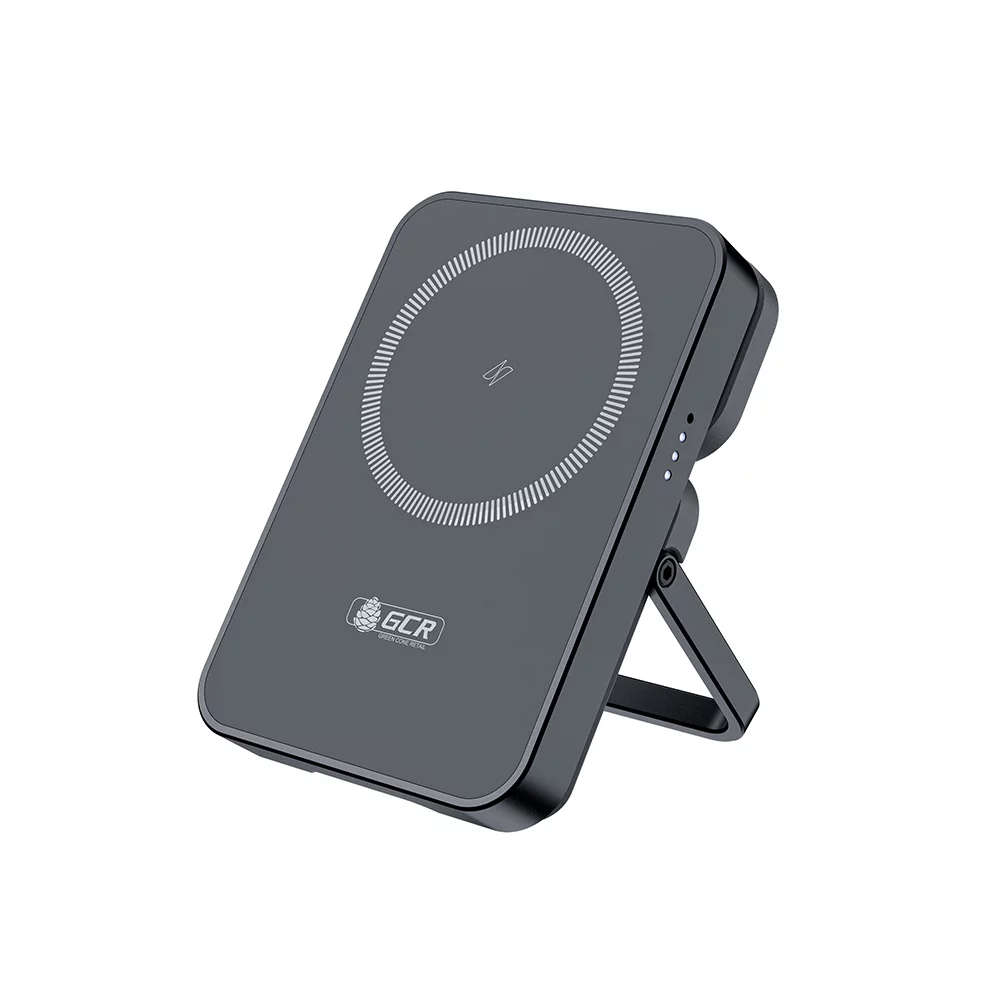 GCR PRO PowerBank магнитный 2в1 на 5000mAh MagSafe беспроводная зарядка 15W + Type-C PD 20W, складная подставка, графит, GCR-56911