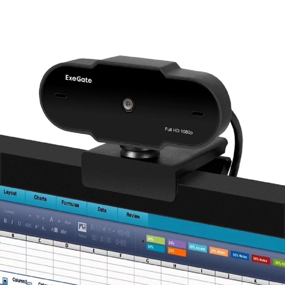 ExeGate GoldenEye C300 Full HD (матрица 1/ 4" 2 Мп, 1920х1080, 1080P, USB, фиксированный фокус, микрофон с шумоподавлением, универсальное крепление, кабель 1,2 м, Windows® 7/ 8/ 10/ 11, Mac OS 10.6 и выше (EX297682RUS)